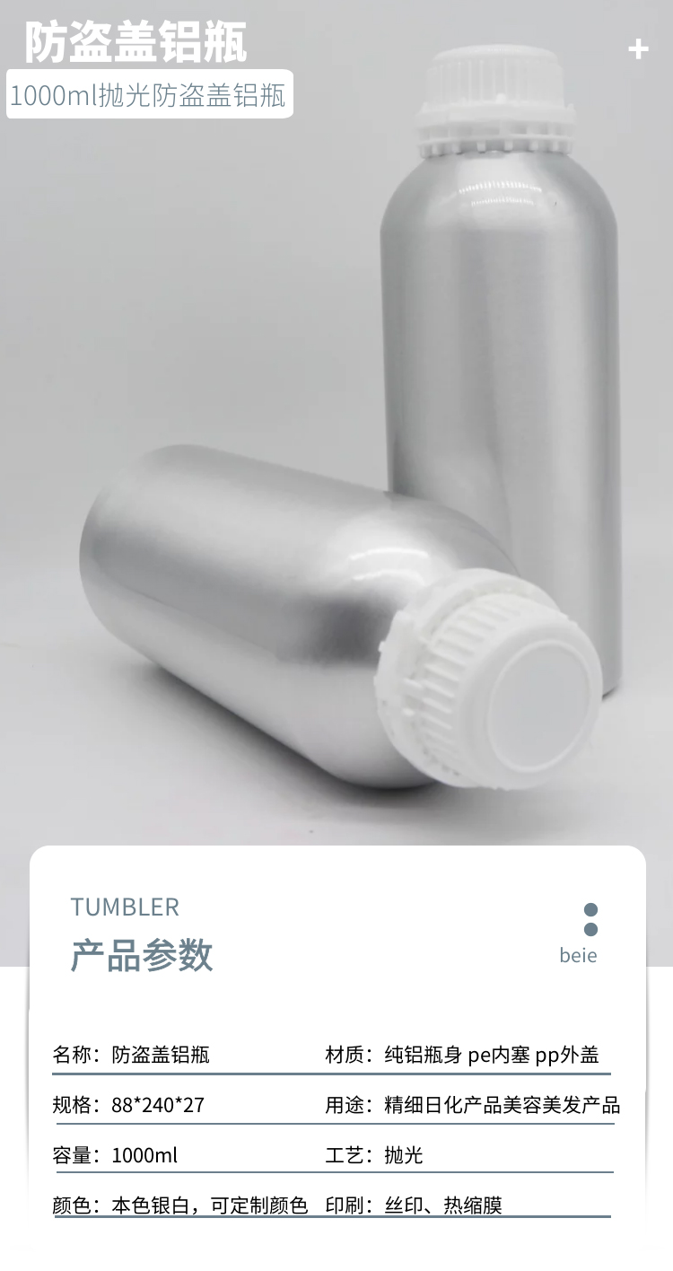 1000ml抛光防盗盖铝瓶