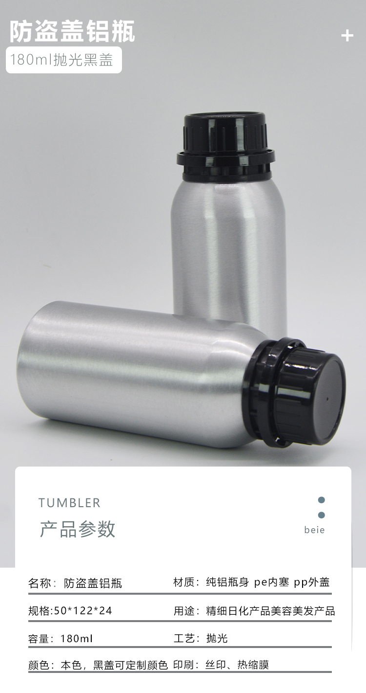 180ml抛光黑盖防盗盖铝瓶