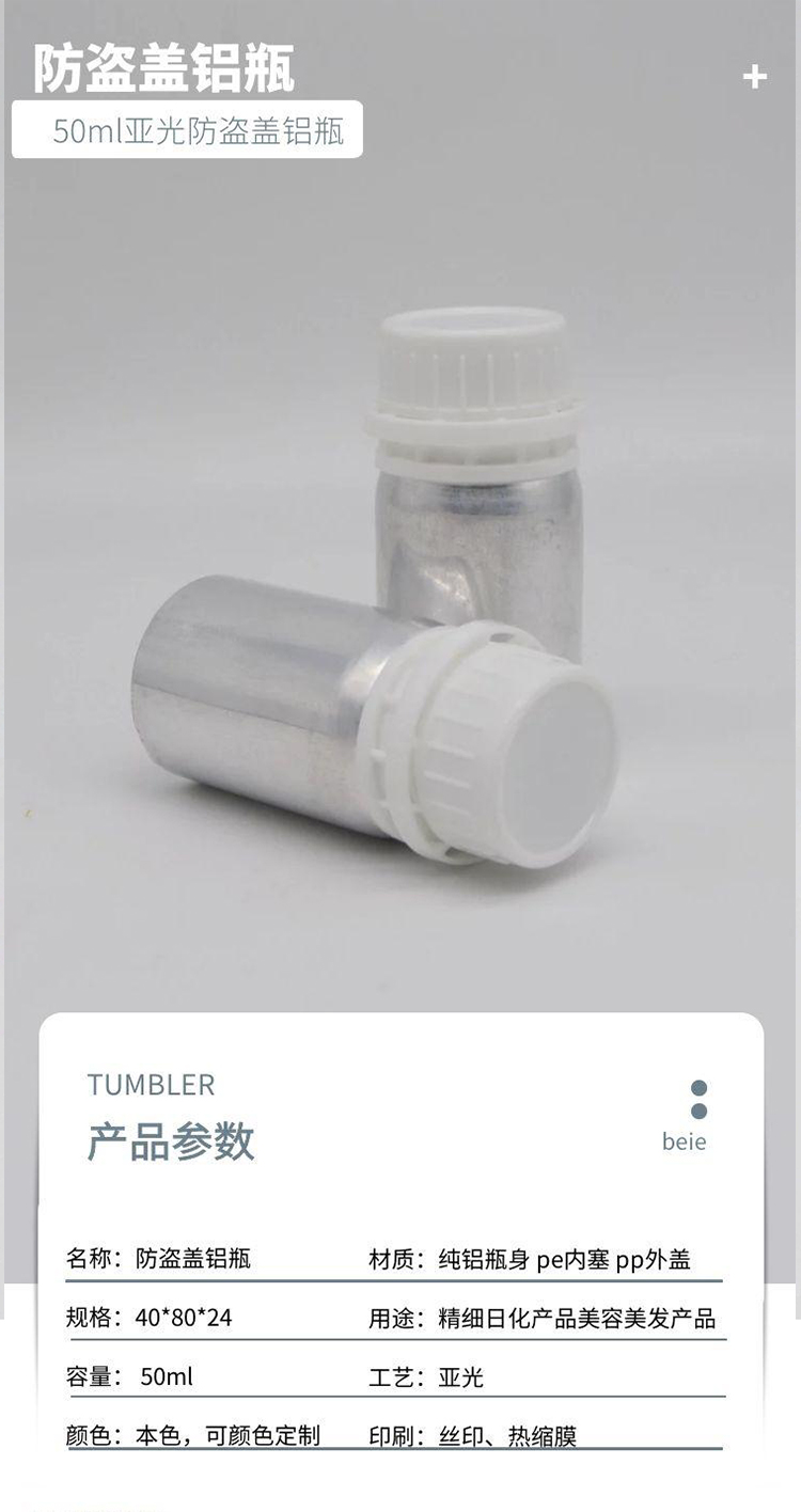 50ml亚光防盗盖铝瓶